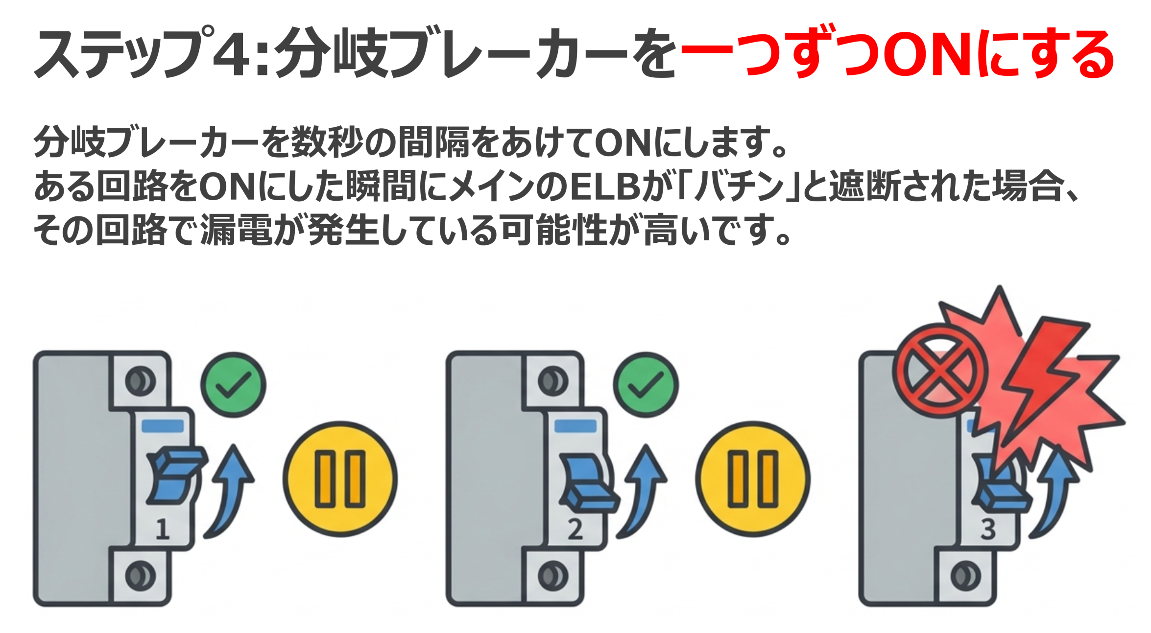 4.分岐回路を1つずつONにする