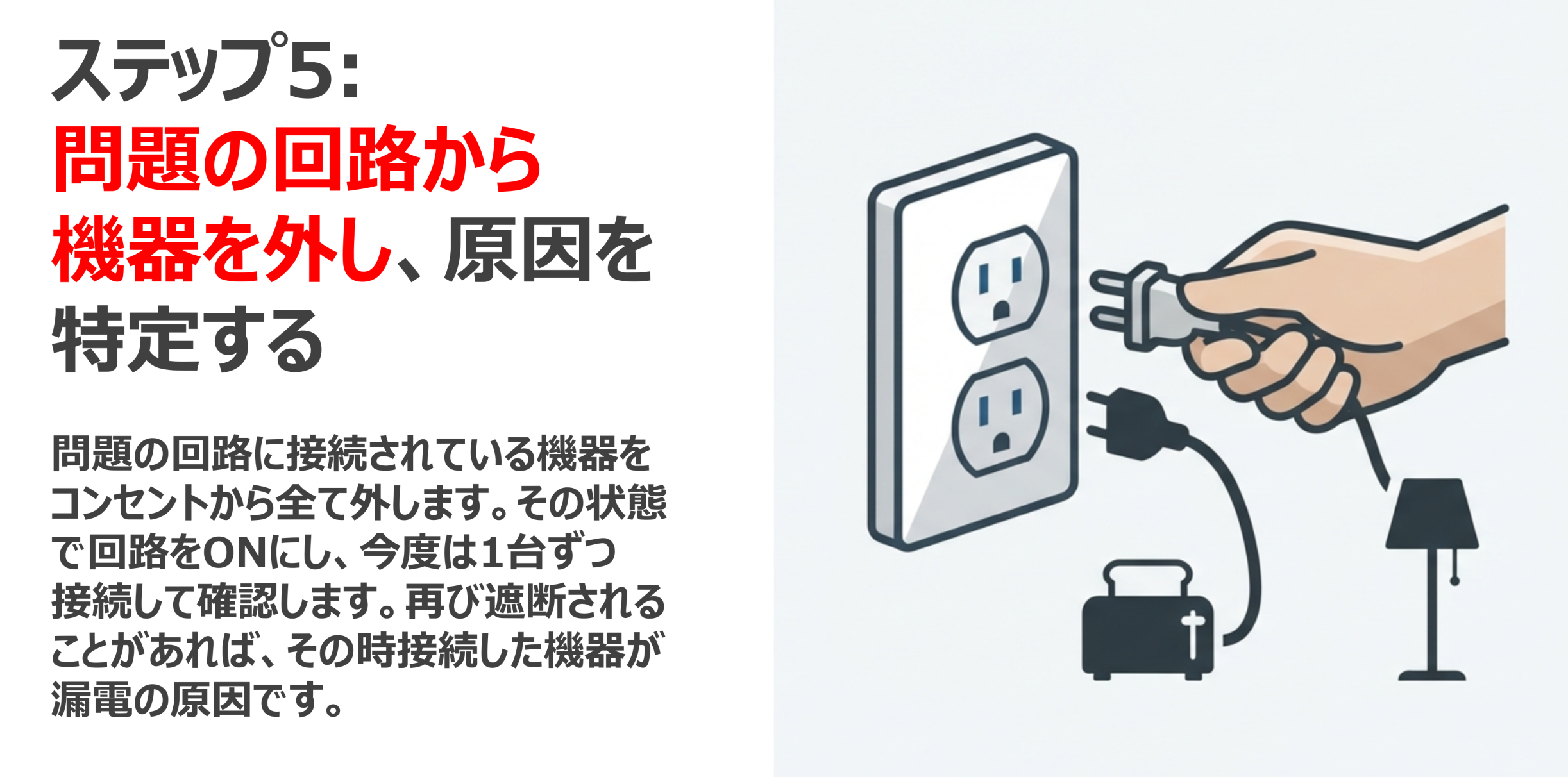 判断に迷った場合や、同じ回路で繰り返し遮断する場合は、必ず電気工事士などの専門家に相談してください。