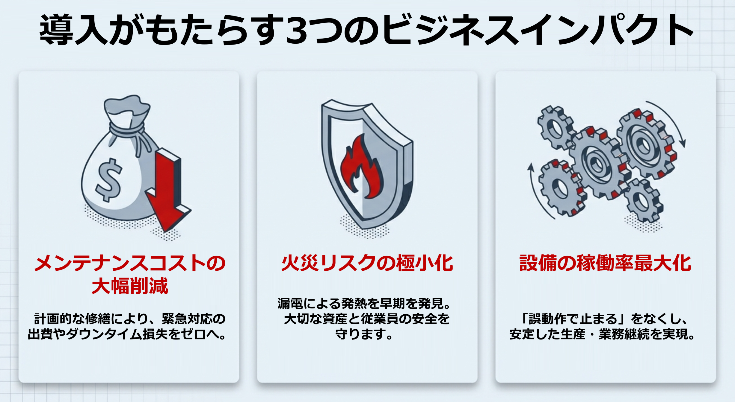 この仕組みがもたらす最大のメリットは、「事後対応」から「予知保全」への転換です。