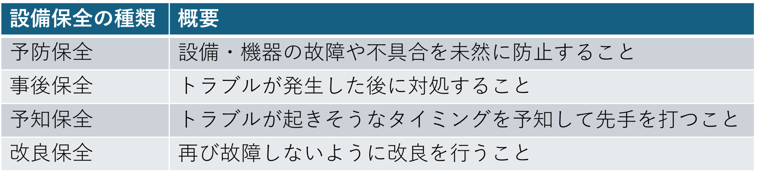 設備保全の主な種類